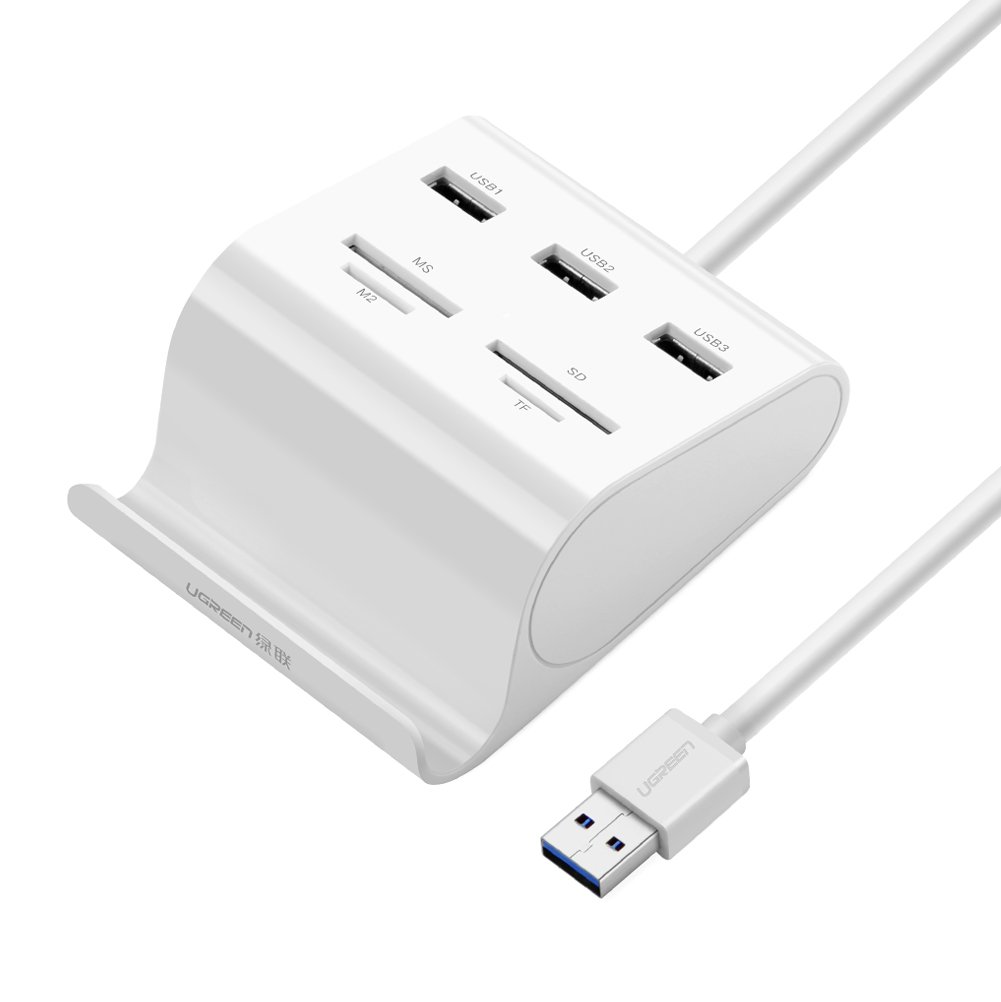 UGREEN Hub USB 3.0 con 3 Porte e Lettore di Schede con 4 Slot SD TF MS M2 con Supporto per Telefono e Tablet SuperSpeed 5Gbps per iMac, MacBook Air, MacBook Pro, MacBook, Mac Mini, PC e Laptop, Cavo USB 3.0 da 100cm descrizione